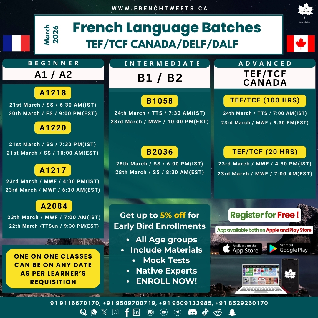 My sincere thanks to my wonderful instructors Ms Cheryle Astruc under whom I took TEF group sessions and Ms Melany who guided me for personal interaction ( Expression Orale) of TEF. Both of them showed immense expertise and patience while responding to my “Extremely Specific” requirements when it came to TEF preparation. Last but not the least of course, a special “thanks” to Ms Dolly Setia who made all this “personalised” training work out so smoothly that I could attain C1 level in all the competencies. I would highly recommend “French Tweets” to all french learners.